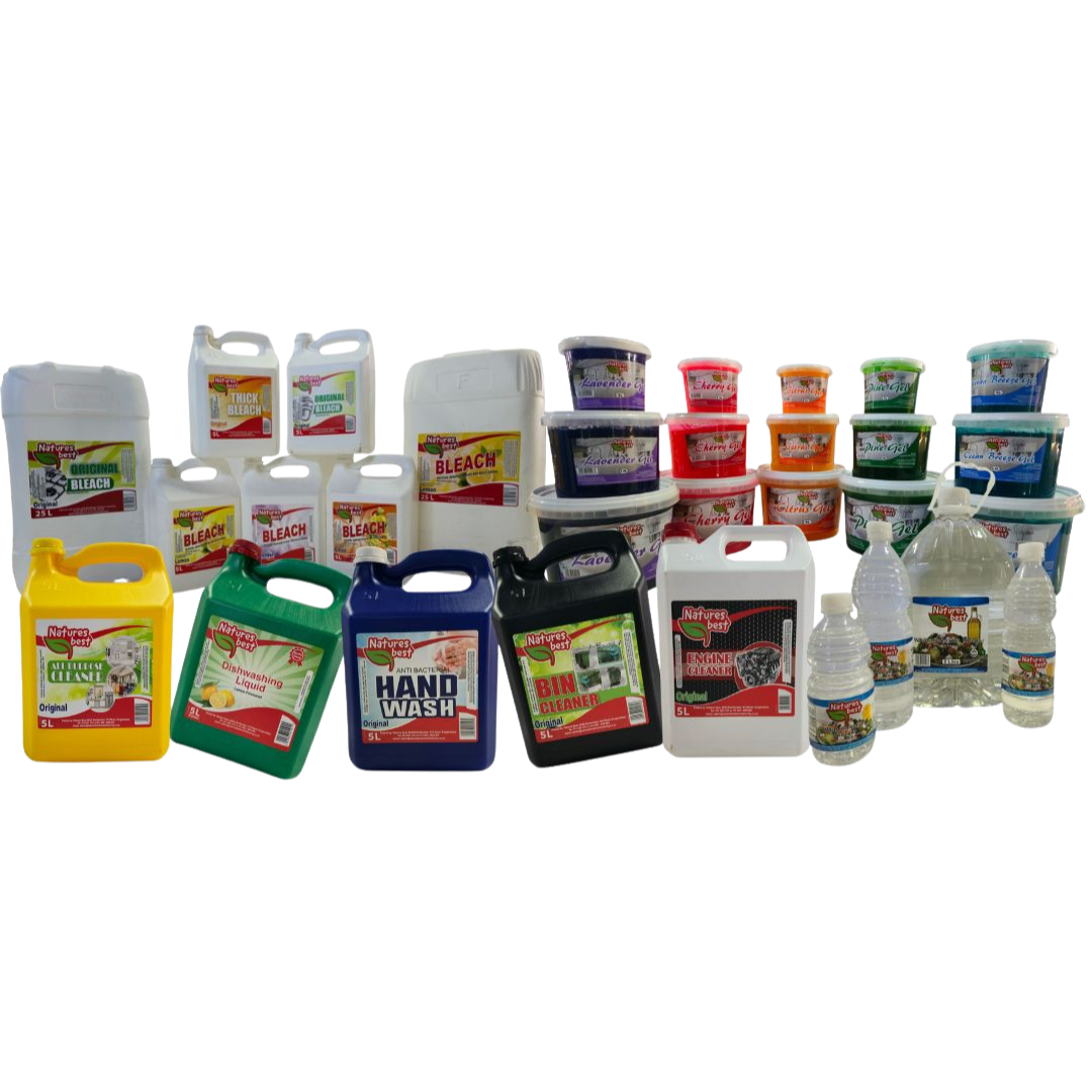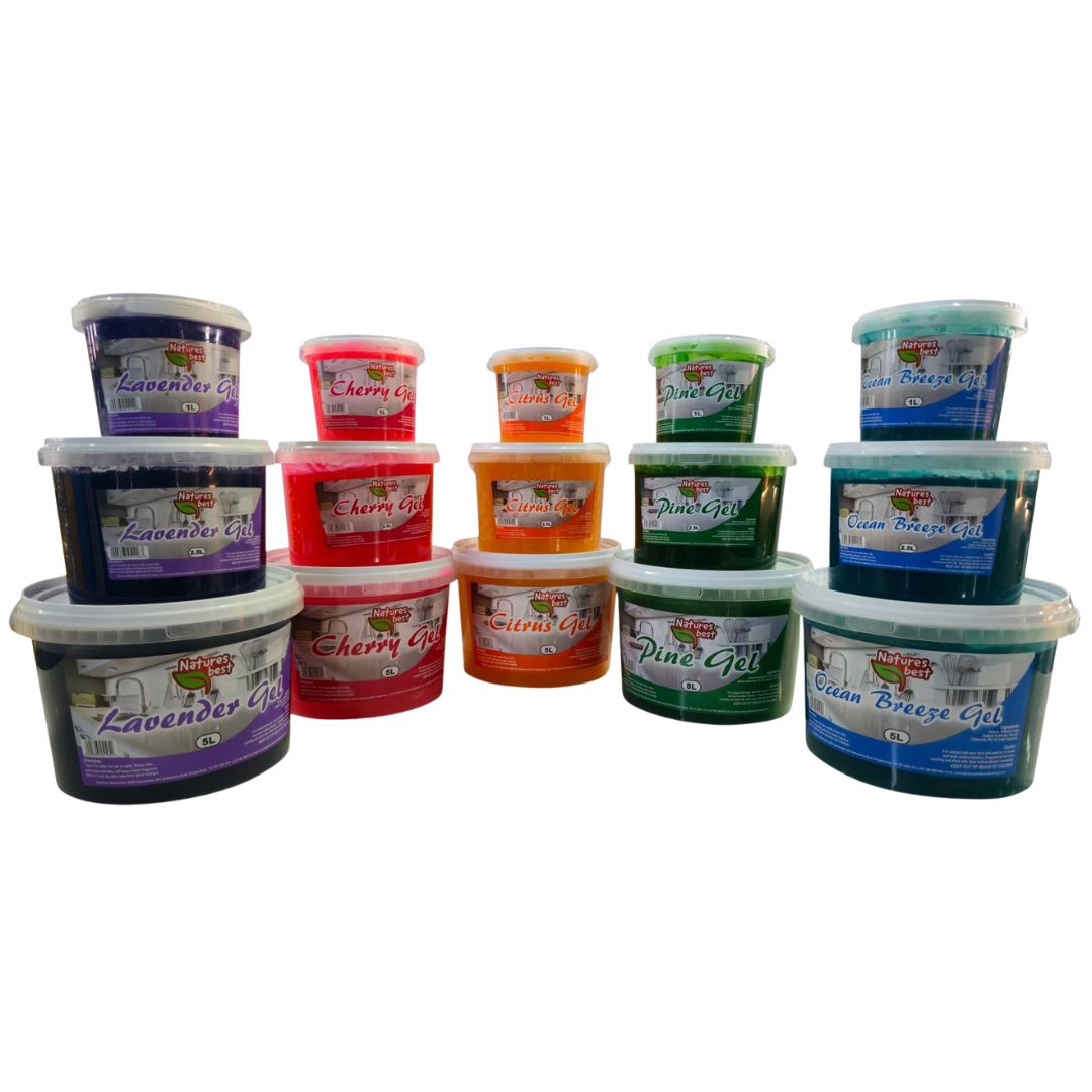 Natures Best Manufacturing supplies South Africa with high-quality commercial cleaning and kitchen products. Our flagship Pine Gel—available in Pine, Lavender, Citrus, Cherry, and Ocean Breeze formulations—blends powerful surfactants and natural pine oil for effective cleaning, disinfecting, and deodorizing all household and industrial surfaces. Available in sizes from 1 L to 20 L, it’s a versatile choice for hospitality, institutional cleaning, and food service industries.