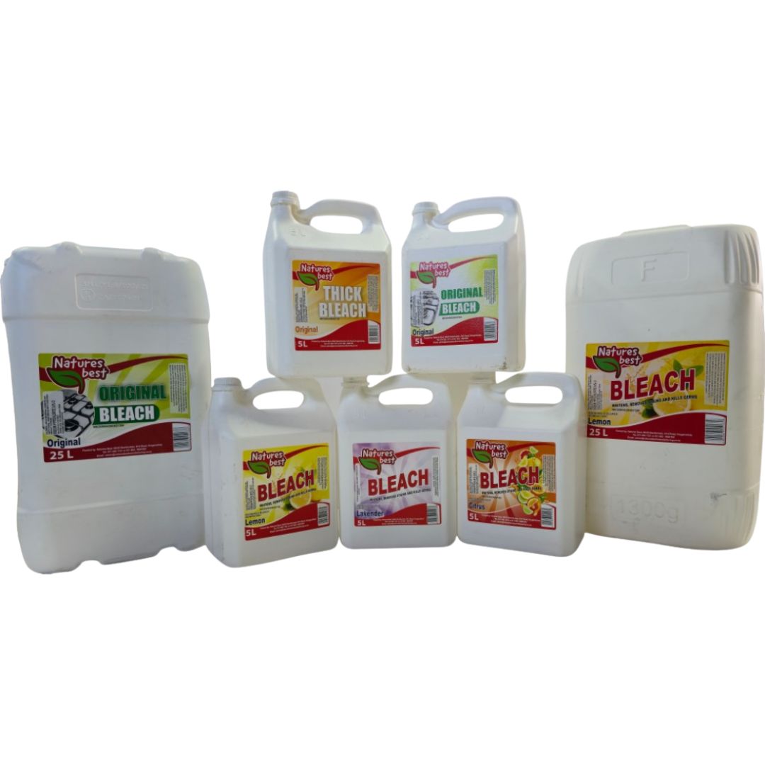 Available in Thick, Original, and scented variants (Lavender, Citrus, Lemon) in 5L and 25L sizes. Powerful and reliable, this range is ideal for disinfecting surfaces, whitening, and maintaining hygiene in households, hospitality, and industrial environments.
