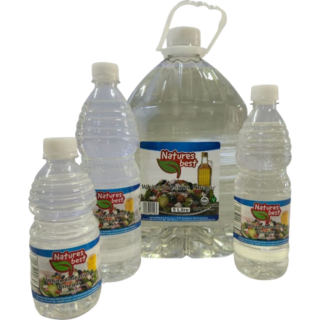 Available in 375ml, 500ml, 750ml, 2L, 5L, 20L sizes, with strengths of 2.5%, 5%, and 10%. A versatile solution for both culinary use and effective cleaning, supplied in cost-effective bulk packaging for households, hospitality, and industry.