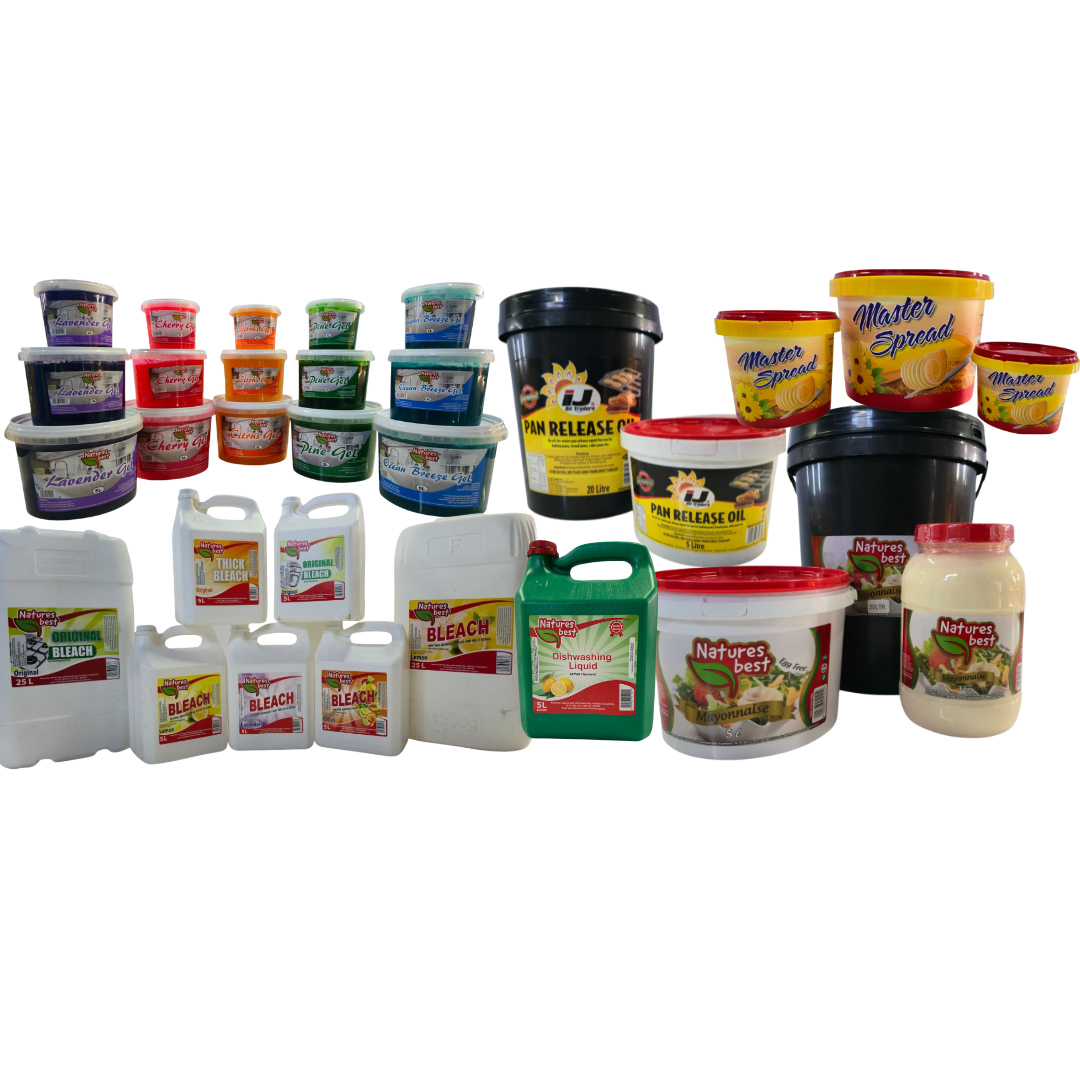 We’re a trusted sister company of IJ Oils, manufacturing a comprehensive suite of commercial-grade cleaning and kitchen solutions for businesses and distributors across South Africa. Our expertise spans everything from multi-purpose Pine Gel cleaners to high-quality condiments like mayonnaise—all crafted with consistent quality and competitive wholesale pricing.